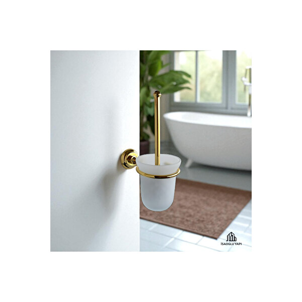 İsaoğlu Yapı Gold Klozet Fırçası Duvara Askılı Yer Tutmaz Gold Tuvalet Fırçası Pirinç Materyal