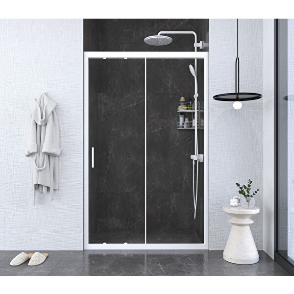 İskit Duşakabin 117 Cm 1 Sabit 1 Sürgü İki Duvar Arası Şeffaf Cam Beyaz Profil 6mm Kabin 117 cm