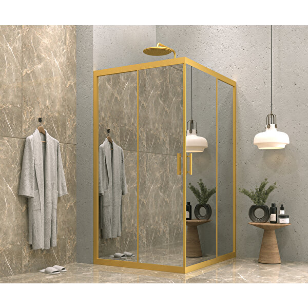 İskit Duşakabin İskit Duşakabin 90 X 120 Dikdörtgen Aynalı Reflekte Cam Köşe Girişli Kabin Gold Profil 6mm 90x120 cm