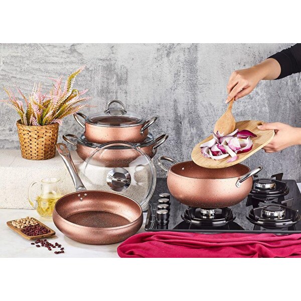 Kahramanlar Granit 7 Parça Yanmaz Yapışmaz Tencere Seti