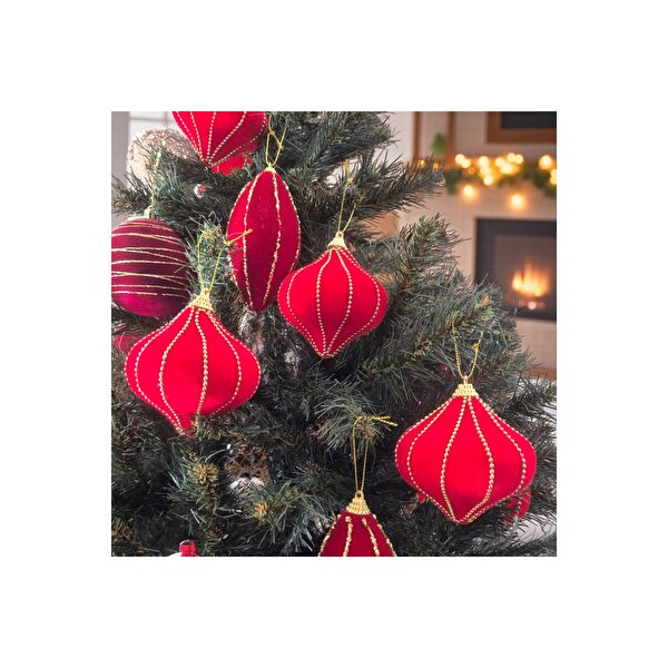 Kapella Lüks Yılbaşı Damla Süs 8cm Kadife 6lı Altın Boncuk Şeritli Ast7263