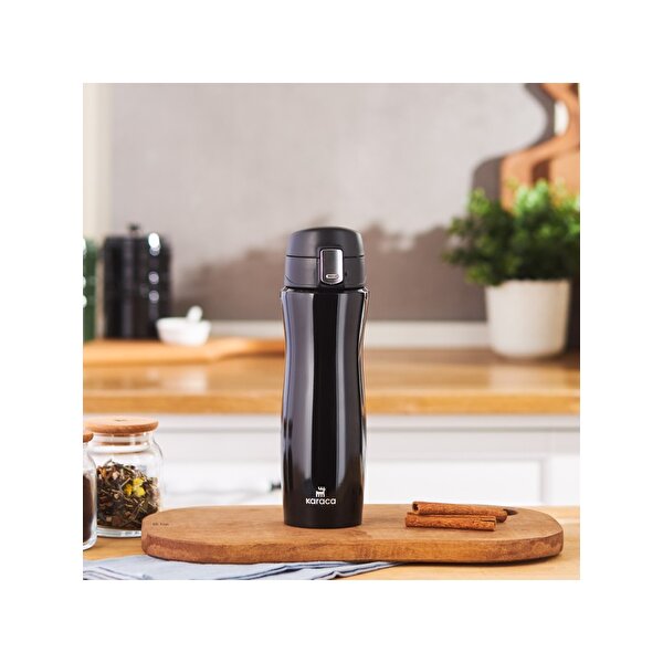 Karaca Jüpiter Güvenlik Kilitli Sızdırmaz Kapaklı Paslanmaz Çelik Termos 395 Ml Siyah