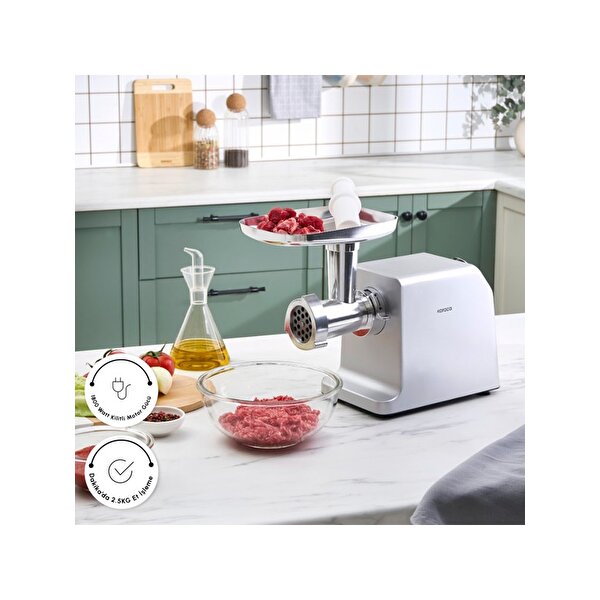 • 1800W güçlü motoru sayesinde dakikada 2,5 kg ’ye kadar et işleme kapasitesine sahiptir.