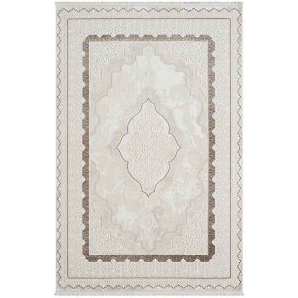 Karmen Halı Dark Dk016a Bej Halı Kahverengi Kenar Çerçeveli Göbekli Akrilik Tozuaz Modern Salon Halısı Koridor 240x340 cm