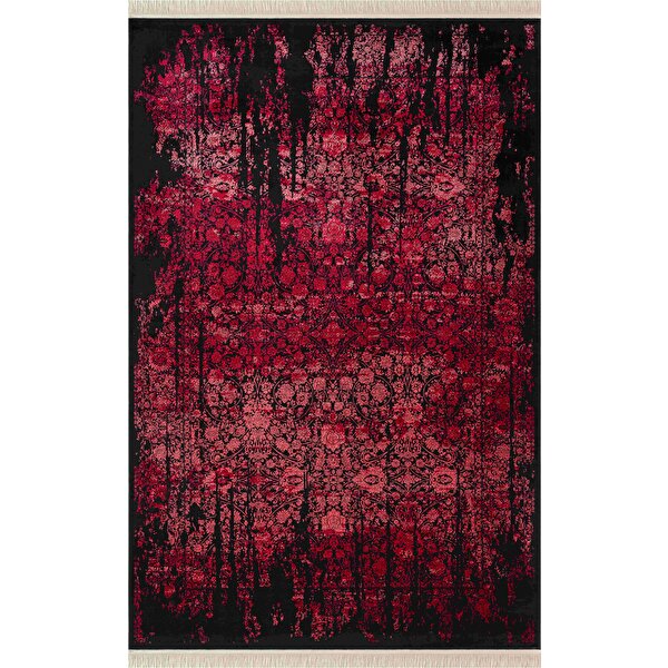 Karmen Halı Diamente Dm004j Siyah Kırmızı Modern Klasik Desen 100 Tarak Bambu Viskon Halı İpek Serisi 100x200 cm