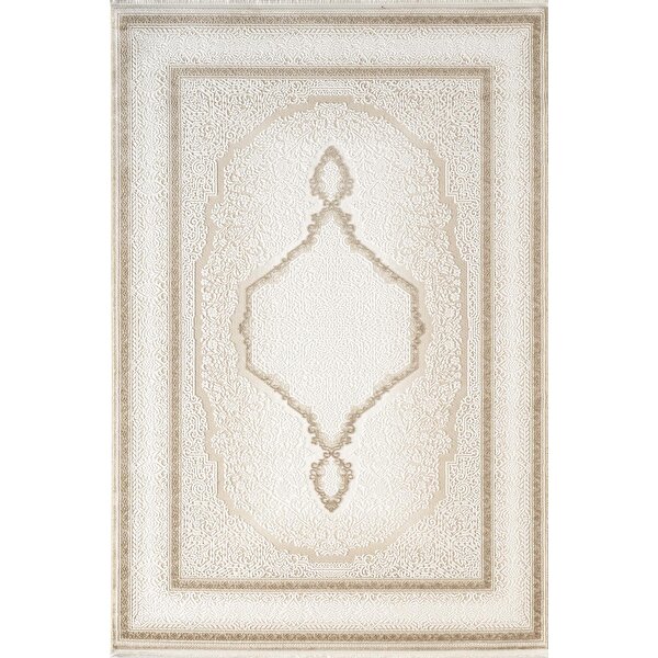 İndigo ID001K Krem Kahve Klasik Çerçeveli Desen Akrilik iplik Tozuaz Pamuk Taban Salon Mutfak Halısı
