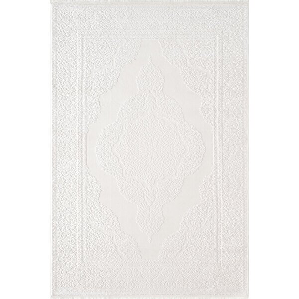 Karmen Halı İndigo Id006w Beyaz Klasik Çerçeveli Desen Akrilik İplik Tozuaz Pamuk Taban Salon Mutfak Halısı 200x290 cm
