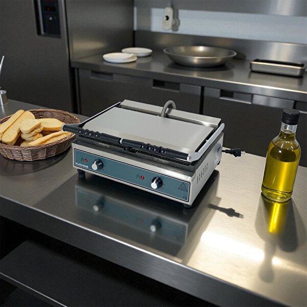 TEKNİK ÖZELLİKLER • Termostat kontrollü ısı ayarlıdır. • Çıkarılabilir yağ toplama haznelidir. • Pik döküm pişirme yüzeylidir. • 430 kalite krom çelik gövdelidir. • Uzun kullanım ömürlü ve dayanıklı tasarıma sahiptir.