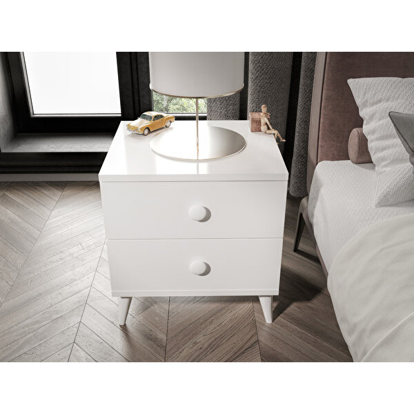 Kzn Home Fındık 2 Çekmeceli Beyaz Komodin - Tamamı 1. Kalite Mdflam