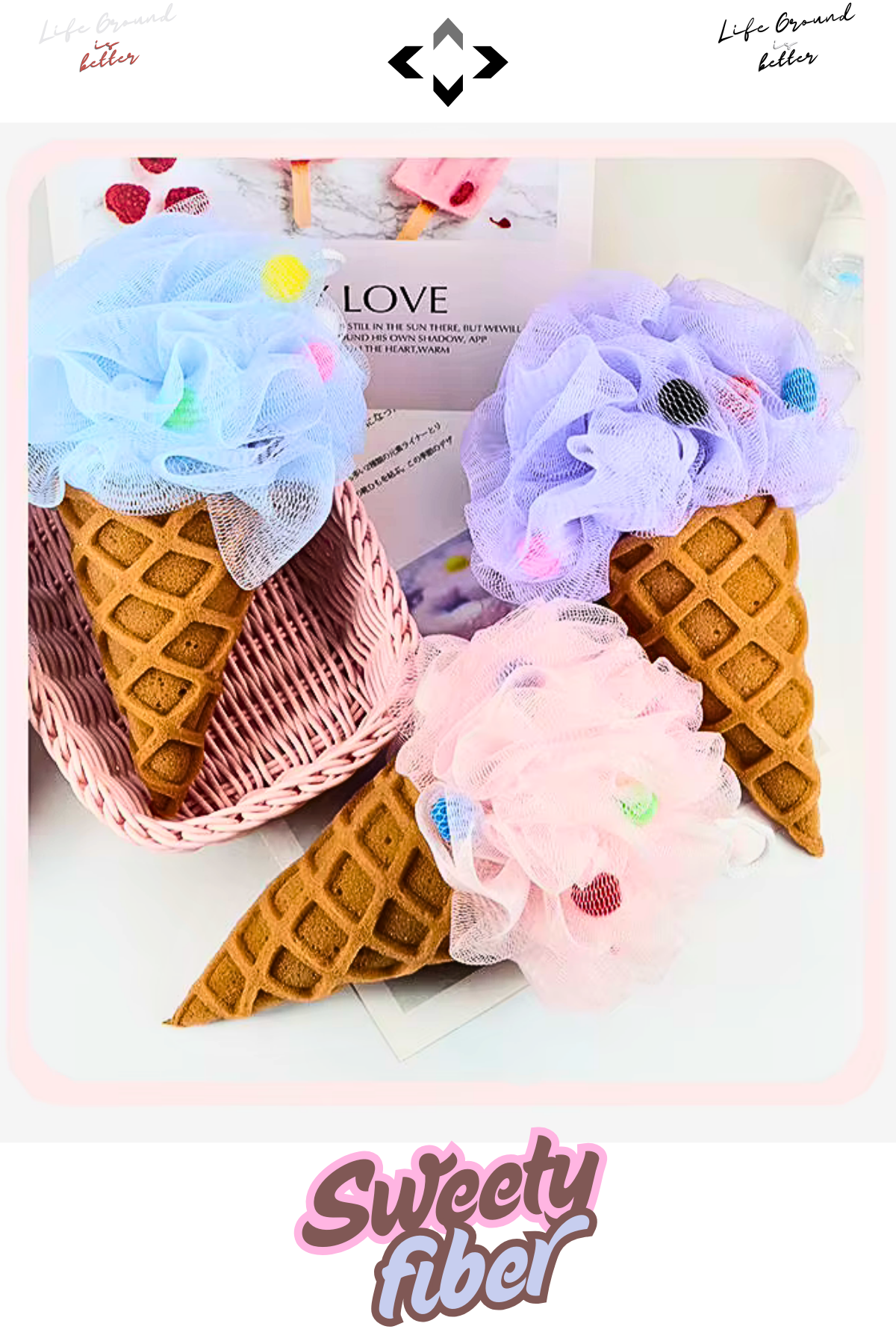 LİGROUND Sweety Fiber 3 Adet Dondurma Desenli Duş Banyo Kesesi Banyo Vücut Lifi Desenli Banyo Süngeri