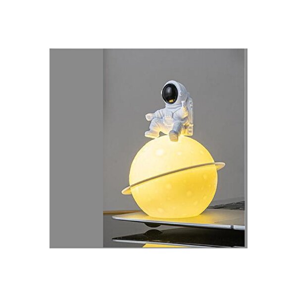 GECE LAMBASI ASTRONOT MODELİDİR.; ABS PLASTİKTEN ÜRETİLMİŞTİR.; PİL İE ÇALIŞIR.; - Plastik malzeme kullanımı sayesinde dayanıklı ve uzun ömürlü bir kullanım sunar.; - E10 duy tipi ile uyumlu ampullerle kolayca değiştirilebilir, böylece aydınlatma ihtiyacınız her zaman karşılanır.; - Pilli çalışma sistemi sayesinde elektrik prizine ihtiyaç duymadan rahatça kullanılabilir; hareket özgürlüğünüz artar.; - Kablosuz-pilli modeli ile kablo karmaşasına son vererek, masa üstünde şık bir görünüm sağlar.; - 11x12 inç boyutlarındaki kompakt tasarımıyla küçük alanlarda bile yer kaplamaz ve estetik bir dokunuş ekler.;