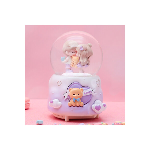 Livava Ayıcıklı Büyük Boy Kar Küresi Işıklı, Müzikli, Püskürtmeli, Mor, 16x12 Mor