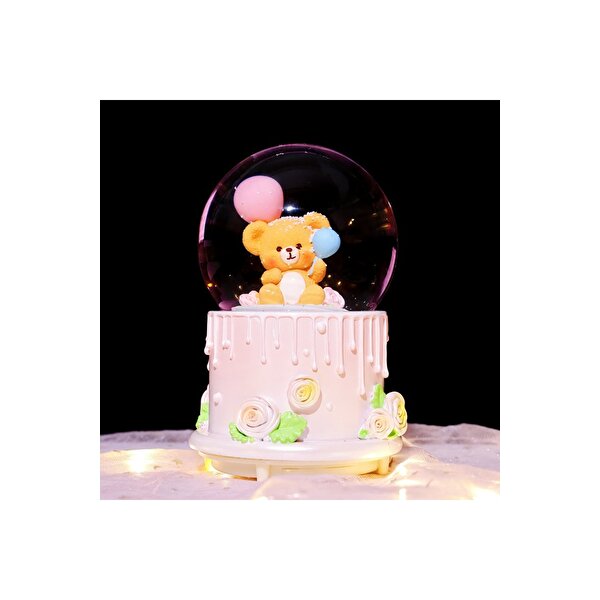 Livava Ayıcıklı Büyük Boy Kar Küresi Işıklı, Müzikli, Püskürtmeli, Mor, 16x12 Pembe