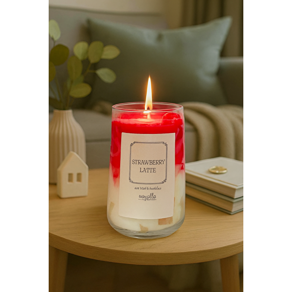 Livava Buzlu Çilek Jel Mum Cam Bardak ,%100 Soyawax El Yapımı, Çilek Kokulu, 13x8 Pembe