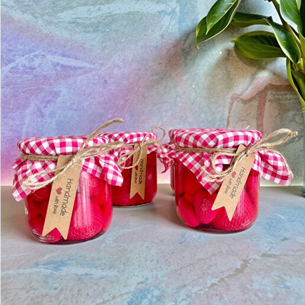 Livava Çilek Reçeli Jel Mum Cam Kavanoz ,%100 Soyawax El Yapımı, Çilek Kokulu, 10x9 Kırmızı