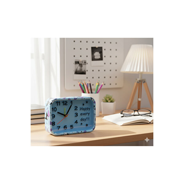 Livava Desenli Dikdörtgen Masa Saati, Mavi, 18x13 Mavi