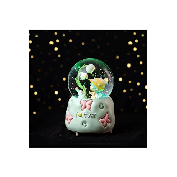 Livava Kelebekli Büyük Boy Kar Küresi Işıklı, Müzikli, Püskürtmeli, Yeşil, 16x12 Yeşil