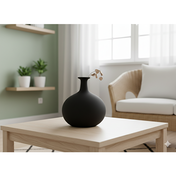 Livava Matara Seramik Vazo, Siyah, 24x20 Siyah
