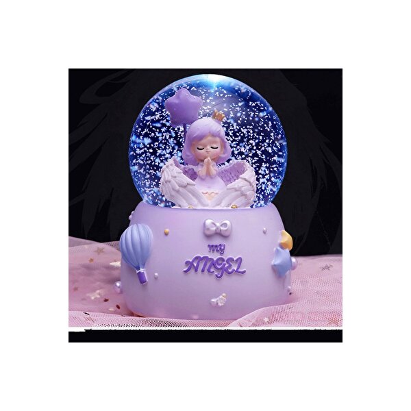 Livava Melek Orta Boy Kar Küresi Işıklı, Müzikli, Mor, 12x8 Mor