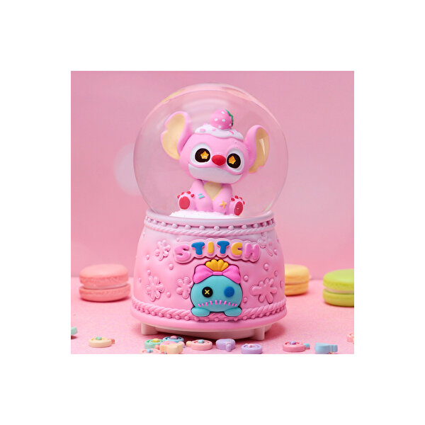 Livava Stitch Bebek Orta Boy Kar Küresi Işıklı, Müzikli, Pembe, 12x8 Pembe