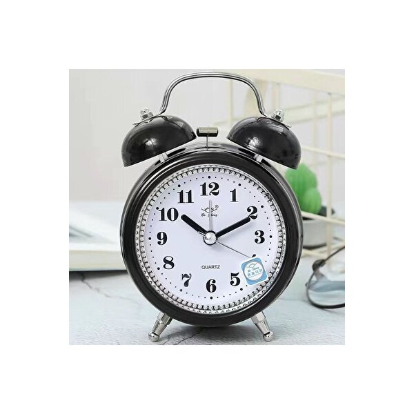 Livava Taşlı Yuvarlak Mini Metal Masa Saati, Alarmlı Ve Işıklı, Siyah, 13x8 Siyah