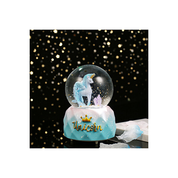 Livava Unicorn Büyük Boy Kar Küresi Işıklı, Müzikli, Püskürtmeli, Mavi, 16x12 Mavi