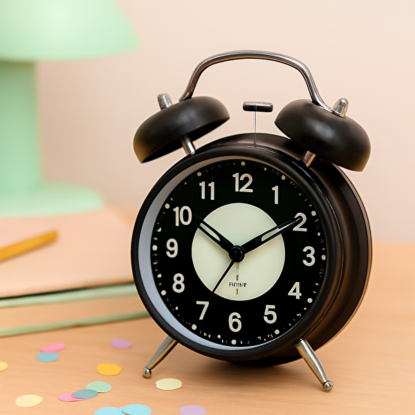 Livava Yuvarlak Alarmlı Ve Işıklı Küçük Metal Masa Saati, Siyah, 12 cm Siyah