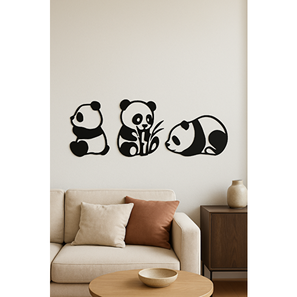 • Sevimli panda figürleri ile yaşam alanlarınıza sıcaklık katın! Metalden üretilmiş 3'lü duvar tablosu, modern ve minimalist dekorasyon için ideal.