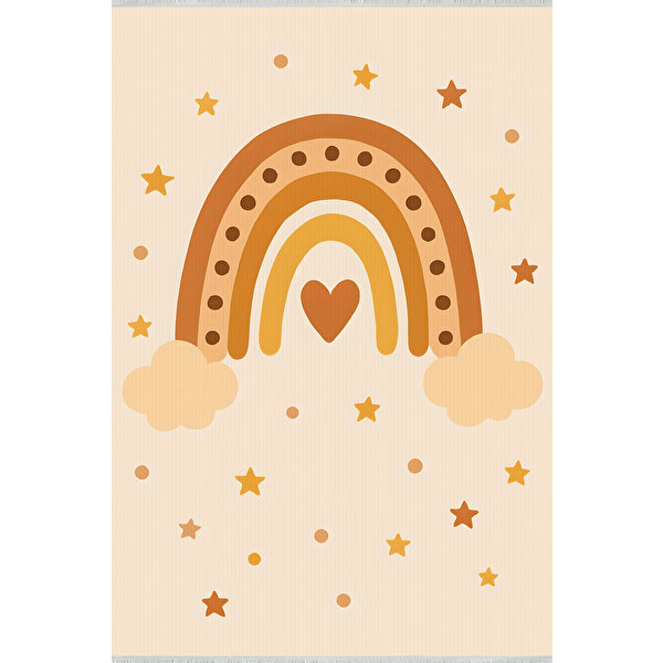 Lofy Halı Bej Zemin Yıldızlı Gökkuşağı Desen Çocuk Halısı 120x180 200x350 cm