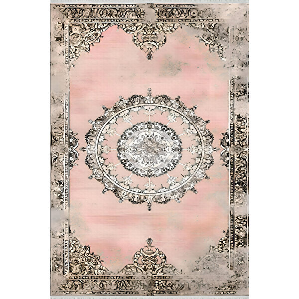 Lofy Halı Halı – Pembe; Bej; Gri – Geleneksel Desen, Pamuk Dokuma Taban, Makinede Yıkanabilir, Kolay Temizlenebilir, Toz Ve Tüy Tutmaz, Kaymaz, Evcil Hayvan Dostu 100x180 cm