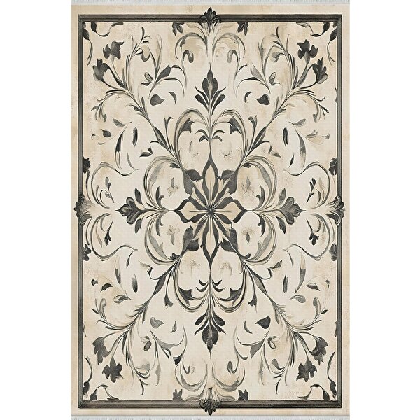 Lofy Halı Mutfak Halısı – Bej; Siyah – Barok Desen, Makinede Yıkanabilir, Kolay Temizlenebilir, Toz Ve Tüy Tutmaz, Kaymaz, Evcil Hayvan Dostu 200x220 cm