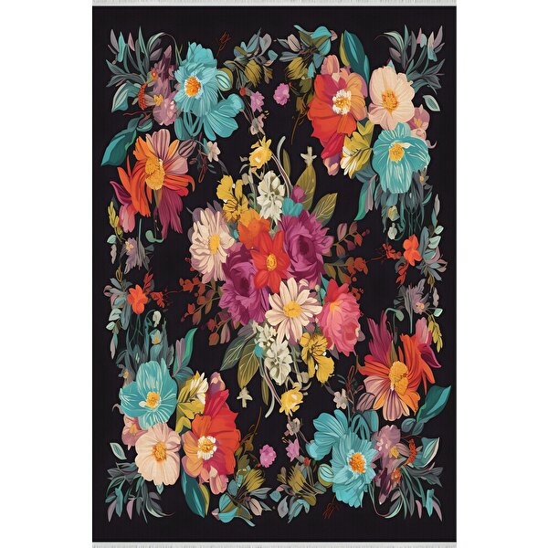 Lofy Halı Mutfak Halısı – Siyah; Kırmızı; Sarı; Turkuaz; Beyaz – Çiçekli Desen, Makinede Yıkanabilir, Kolay Temizlenebilir, Toz Ve Tüy Tutmaz, Kaymaz, Evcil Hayvan Dostu 150x150 cm