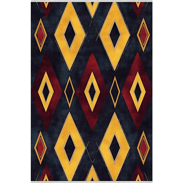 Lofy Halı Mutfak Halısı – Siyah; Sarı; Kırmızı – Geometrik Desen, Makinede Yıkanabilir, Kolay Temizlenebilir, Toz Ve Tüy Tutmaz, Kaymaz, Evcil Hayvan Dostu 150x300 cm