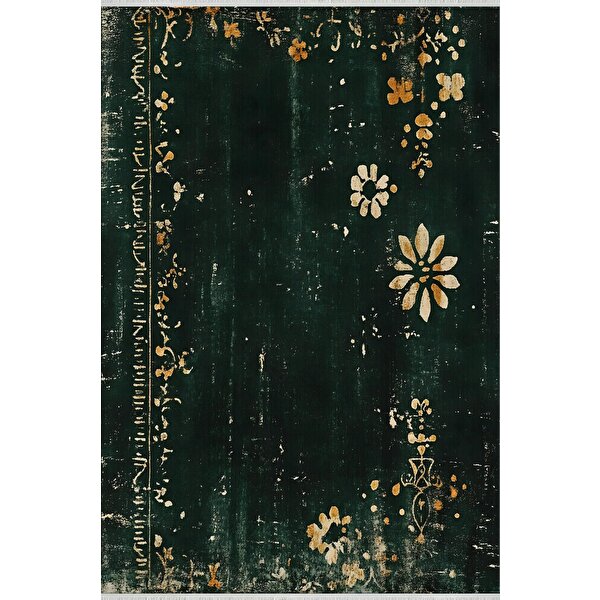 Lofy Halı Mutfak Halısı – Yeşil; Sarı; Krem – Eskitilmiş Görünümlü Floral Desen, Makinede Yıkanabilir, Kolay Temizlenebilir, Toz Ve Tüy Tutmaz, Kaymaz, Evcil Hayvan Dostu 80x80 cm