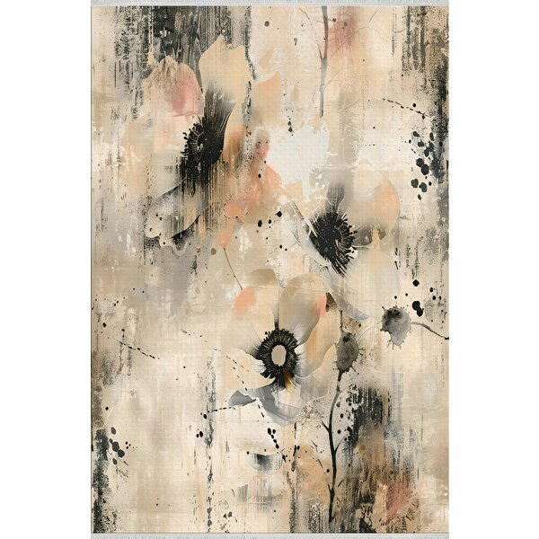 Lofy Halı Oturma Odası Halısı – Bej; Siyah – Çiçekli Desen, Makinede Yıkanabilir, Kolay Temizlenebilir, Toz Ve Tüy Tutmaz, Kaymaz, Evcil Hayvan Dostu 200x220 cm