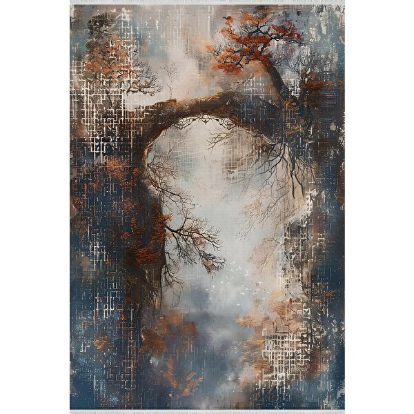 Lofy Halı Oturma Odası Halısı – Lacivert; Turuncu – Doğa Manzara Desen, Makinede Yıkanabilir, Kolay Temizlenebilir, Toz Ve Tüy Tutmaz, Kaymaz, Evcil Hayvan Dostu 100x180 cm