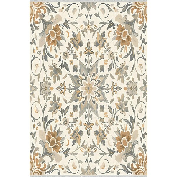 Lofy Halı Pamuk Dokuma Taban Halı – Bej; Krem; Açık Kahverengi – Geleneksel Desen, Makinede Yıkanabilir, Kolay Temizlenebilir, Toz Ve Tüy Tutmaz, Kaymaz, Evcil Hayvan Dostu 160x230 cm