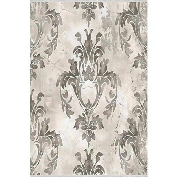 Lofy Halı Pamuk Dokuma Taban Halı – Krem; Gri – Damask Desen, Makinede Yıkanabilir, Kolay Temizlenebilir, Toz Ve Tüy Tutmaz, Kaymaz, Evcil Hayvan Dostu 180x270 cm