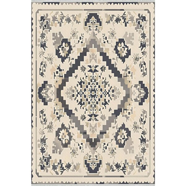 Lofy Halı Pamuk Dokuma Taban Halı – Krem; Gri – Geleneksel Desen, Makinede Yıkanabilir, Kolay Temizlenebilir, Toz Ve Tüy Tutmaz, Kaymaz, Evcil Hayvan Dostu 120x180 cm