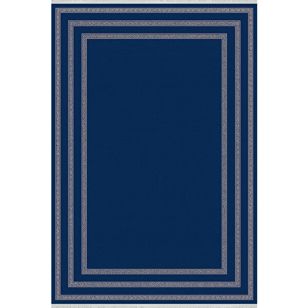 Lofy Halı Pamuk Dokuma Taban Halı – Lacivert; Krem – Geometrik Desen, Makinede Yıkanabilir, Kolay Temizlenebilir, Toz Ve Tüy Tutmaz, Kaymaz, Evcil Hayvan Dostu 150x150 cm