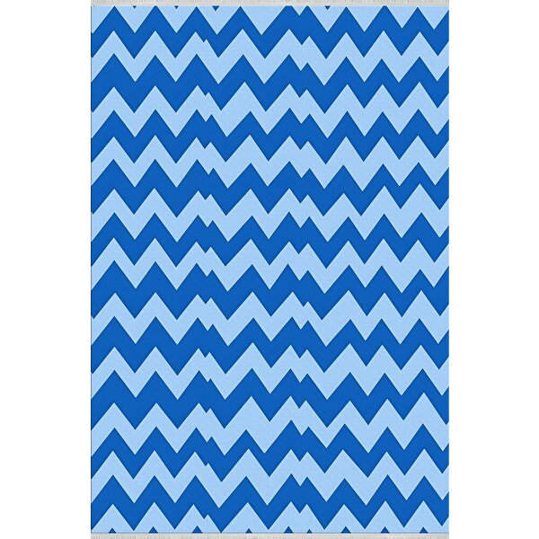 Lofy Halı Pamuk Dokuma Taban Halı – Mavi; Açık Mavi – Zigzag Desen, Makinede Yıkanabilir, Kolay Temizlenebilir, Toz Ve Tüy Tutmaz, Kaymaz, Evcil Hayvan Dostu 160x230 cm