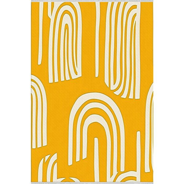 Lofy Halı Pamuk Dokuma Taban Halı – Sarı; Beyaz – Geometrik Desen, Makinede Yıkanabilir, Kolay Temizlenebilir, Toz Ve Tüy Tutmaz, Kaymaz, Evcil Hayvan Dostu 160x230 cm