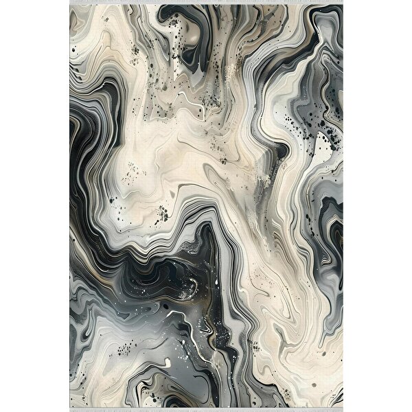 Lofy Halı Pamuk Dokuma Taban Halı – Siyah; Gri; Krem – Mermer Desen, Makinede Yıkanabilir, Kolay Temizlenebilir, Toz Ve Tüy Tutmaz, Kaymaz, Evcil Hayvan Dostu 160x180 cm