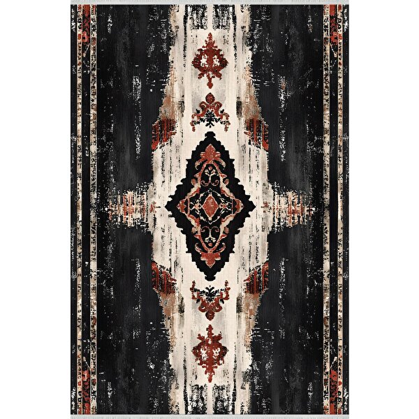 Lofy Halı Pamuk Dokuma Taban Halı – Siyah; Krem; Kırmızı; Kahverengi – Geleneksel Desen, Makinede Yıkanabilir, Kolay Temizlenebilir, Toz Ve Tüy Tutmaz, Kaymaz, Evcil Hayvan Dostu 160x350 cm