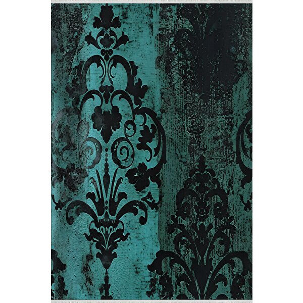 Lofy Halı Pamuk Dokuma Taban Halı – Turkuaz; Siyah – Damask Desen, Makinede Yıkanabilir, Kolay Temizlenebilir, Toz Ve Tüy Tutmaz, Kaymaz, Evcil Hayvan Dostu 80x80 cm