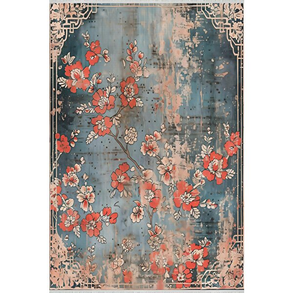 Lofy Halı Pamuk Tabanlı Kaymaz Halı – Mavi; Kırmızı; Bej – Floral Desen, Pamuk Dokuma Taban, Makinede Yıkanabilir, Kolay Temizlenebilir, Toz Ve Tüy Tutmaz, Kaymaz, Evcil Hayvan Dostu 200x350 cm