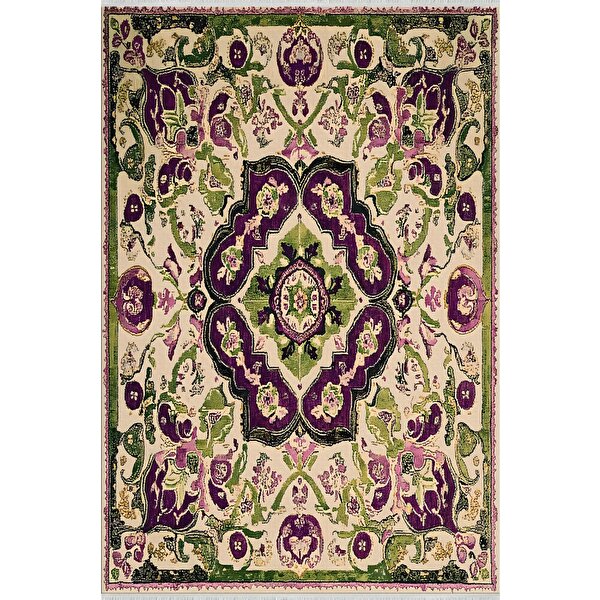 Lofy Halı Pamuk Tabanlı Kaymaz Halı – Mor; Yeşil; Bej; Pembe – Oriental Desen, Makinede Yıkanabilir, Kolay Temizlenebilir, Toz Ve Tüy Tutmaz, Evcil Hayvan Dostu 200x350 cm