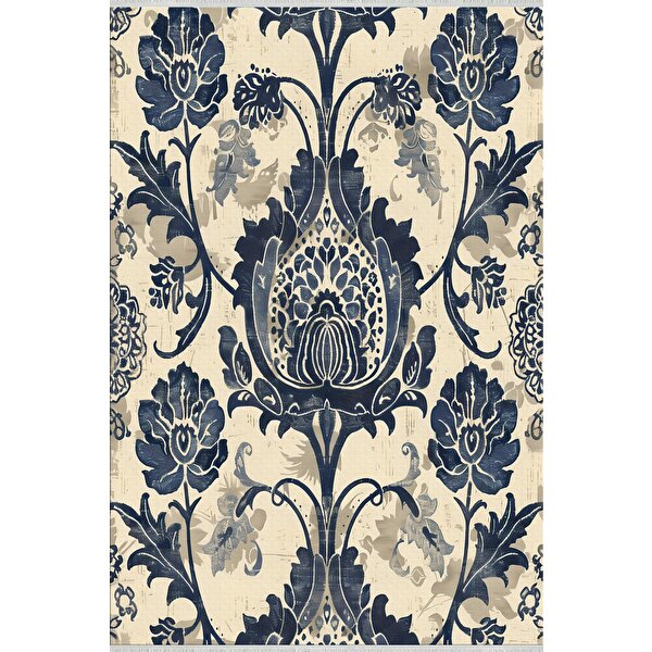 Lofy Halı Robot Süpürgeye Uygun Halı – Pamuk Dokuma Taban Halı – Lacivert; Bej; Gri – Geleneksel Floral Tasarım, Makinede Yıkanabilir, Kolay Temizlenebilir, Toz Ve Tüy Tutmaz, Kaymaz, Evcil Hayvan Dostu 160x180 cm