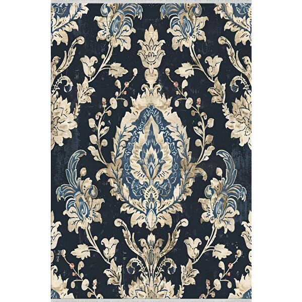Lofy Halı Robot Süpürgeye Uygun Halı – Pamuk Dokuma Taban Halı – Lacivert; Bej; Mavi – Klasik Floral Tasarım, Makinede Yıkanabilir, Kolay Temizlenebilir, Toz Ve Tüy Tutmaz, Kaymaz, Evcil Hayvan Dostu 160x230 cm
