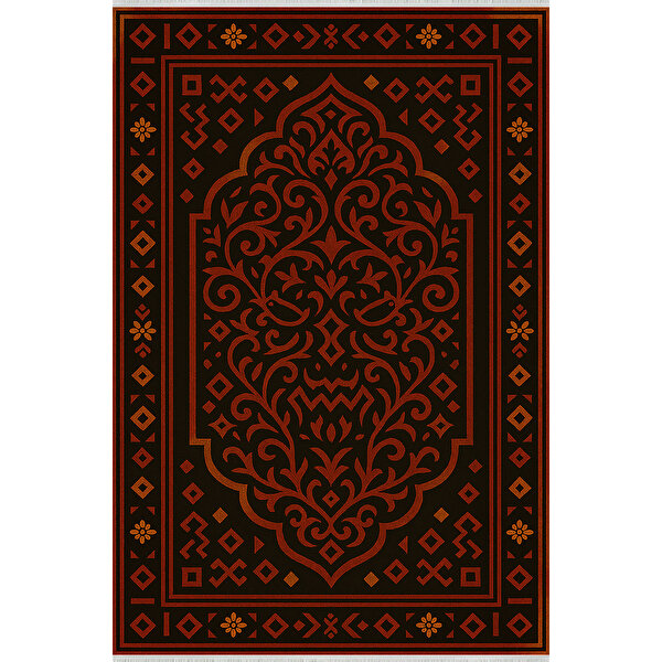 Lofy Halı Siyah Zemin Kırmızı Geometrik Halı – Etnik Stil | Kaymaz Taban, Yıkanabilir, Evcil Dostu 200x250 cm